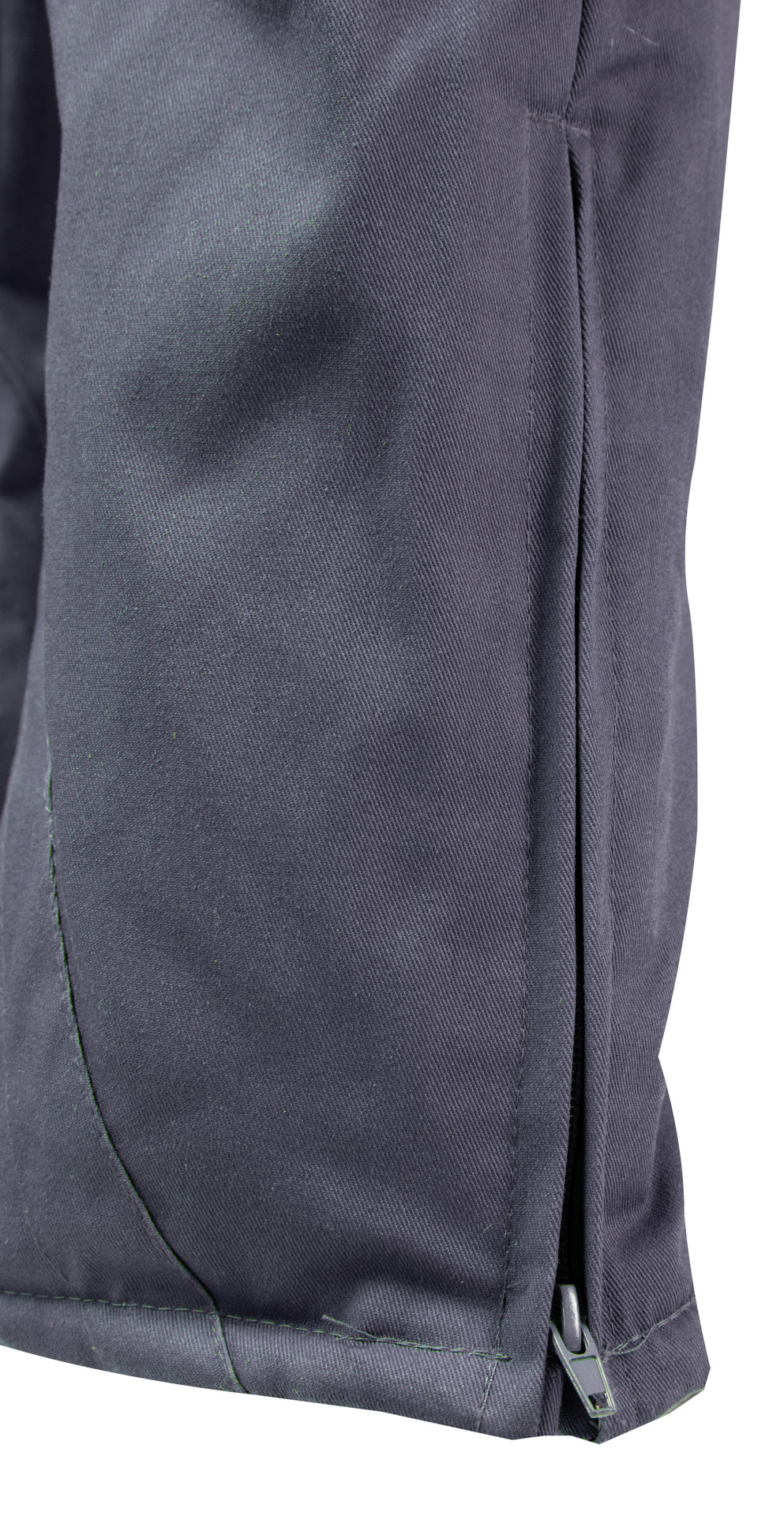 wzmocnienie materiału po wewnętrznej stronie nogawki, u dołu,
