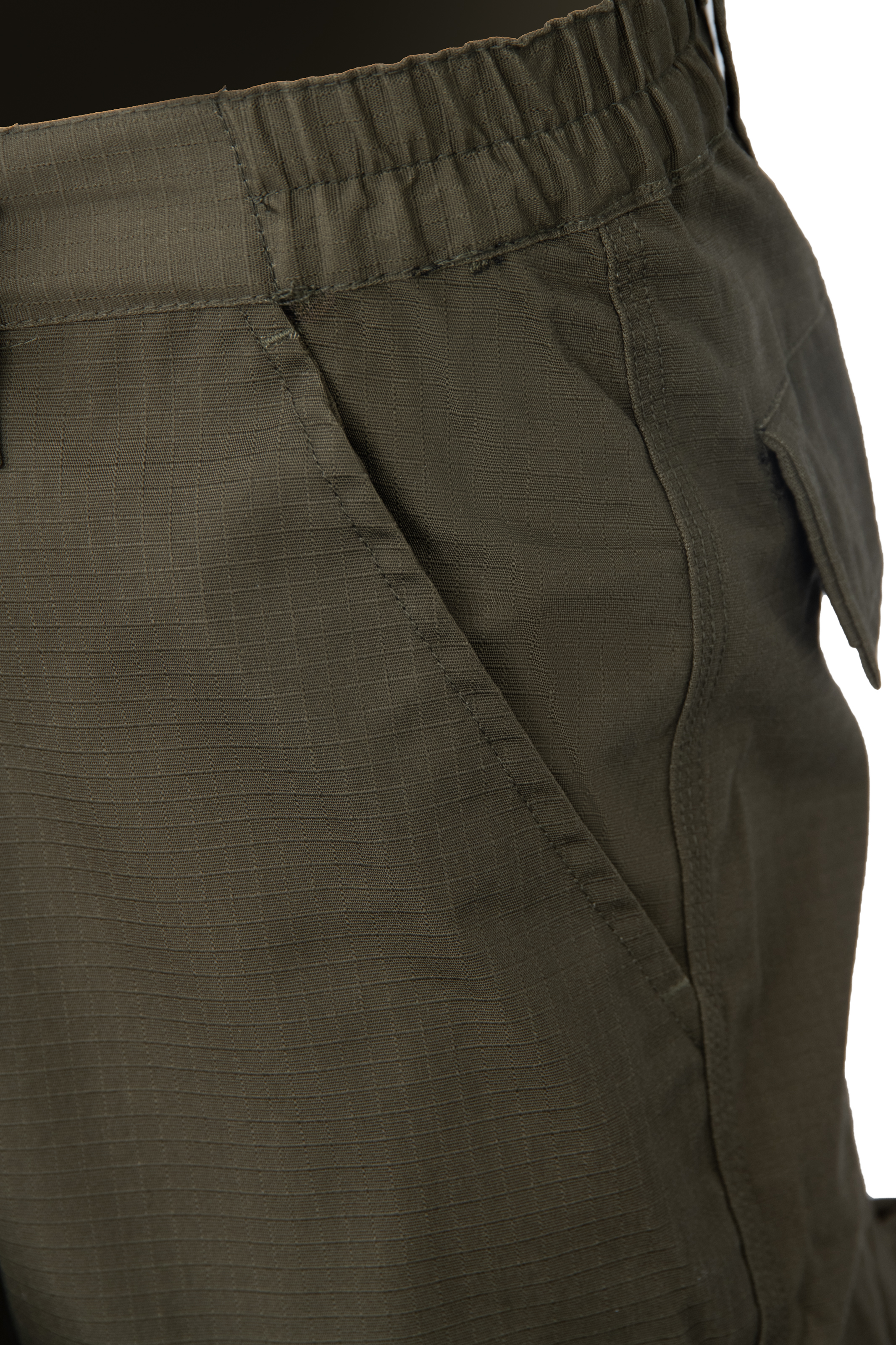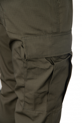 Trousers made from a fabric with a distinctive 6x6mm check pattern, reinforced by the addition of stronger fibres at regular intervals (rip-stop fabric), which prevents the fabric from tearing.