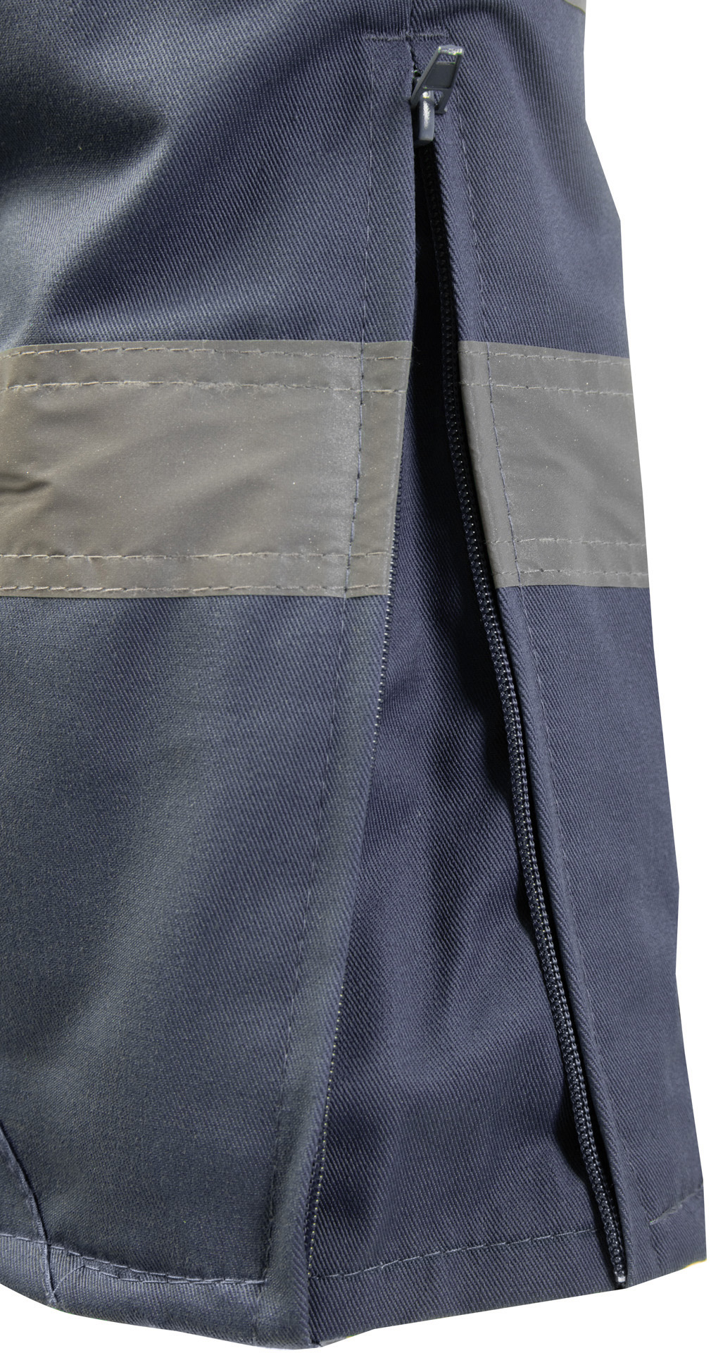 wzmocnienie materiału po wewnętrznej stronie nogawki, u dołu,